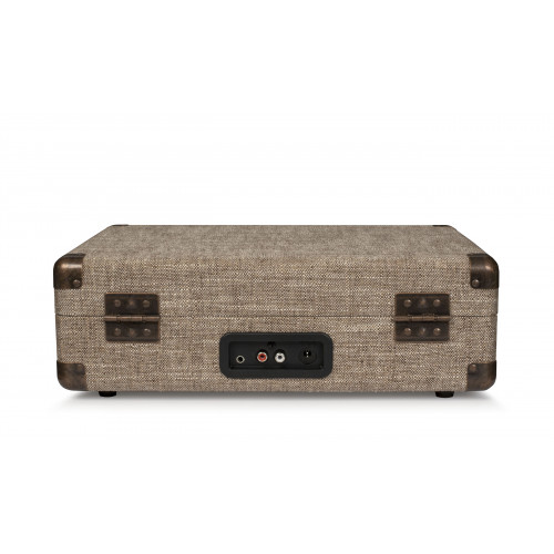 Ременной привод позволяет пластинке вращаться равномерно, а встроенные полноразмерные 6-дюймовые динамики передают звук мягко и чисто. А прямые линии корпуса, обитого искусственной кожей придают этой модели элегантности и делают из обычного проигрывателя стильный аксессуар.