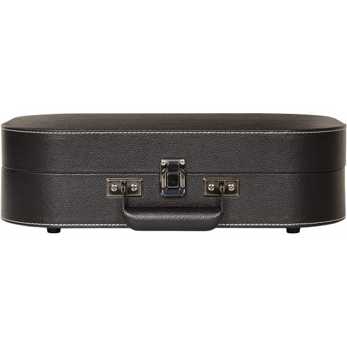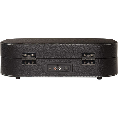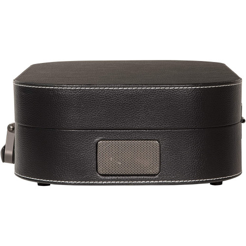 Ременной привод позволяет пластинке вращаться равномерно, а встроенные полноразмерные 6-дюймовые динамики передают звук мягко и чисто. А прямые линии корпуса, обитого искусственной кожей придают этой модели элегантности и делают из обычного проигрывателя стильный аксессуар.