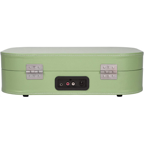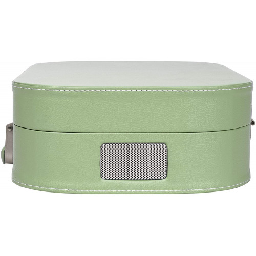 Ременной привод позволяет пластинке вращаться равномерно, а встроенные полноразмерные 6-дюймовые динамики передают звук мягко и чисто. А прямые линии корпуса, обитого искусственной кожей придают этой модели элегантности и делают из обычного проигрывателя стильный аксессуар.