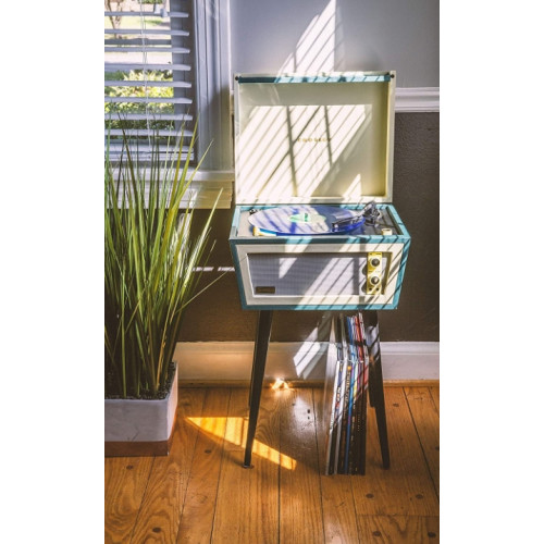 Предлагаемая модель от всемирно известного бренда Crosley – это современная копия популярного в 60-е годы прошлого столетия проигрывателя «Dansette Bermuda», но слегка зауженным корпусом. Данное устройство практически полностью повторяет оформление винтажной модели, а на его передней части присутствует фирменный логотип «Dansette». Устройство располагается на специальной подставке, и благодаря компактным размерам не займет много места в Вашем доме. Проигрыватель станет главным источником музыки в Вашем жилище, ведь помимо винила, модель поддерживает воспроизведение со смартфона посредством технологии Bluetooth, а также имеет AUX-вход для подключения внешних источников звука.