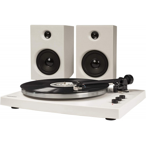Обновленная версия знаменитой системы от Crosley. Это Crosley Т150! Двухскоростной виниловый проигрыватель со встроенным усилителем. Новинка получила литой алюминиевый диск, позволяет получать гораздо более качественный звук с меньшим количеством неприятных артефактов. Грузок на тонарм создает возможность калибровать проигрыватель под себя, а также использовать Т150 с другими картриджами и иглами. На проигрывателе установлена бриллиантовая игла от "гуру в мире игл" бренда Audio-Technica. Наслаждайтесь объемным и чистым звуком комплектных колонок с мощностью 30 Вт, или подключите плеер к звонишньои акустики через RCA выход. Из знакомых всем функциям имеем: регулятор Pitch, две доступные скорости для прослушивания любой пластинки 33 1/3 и 45 RPM, Bluetooth модуль для подключения вашего любимого