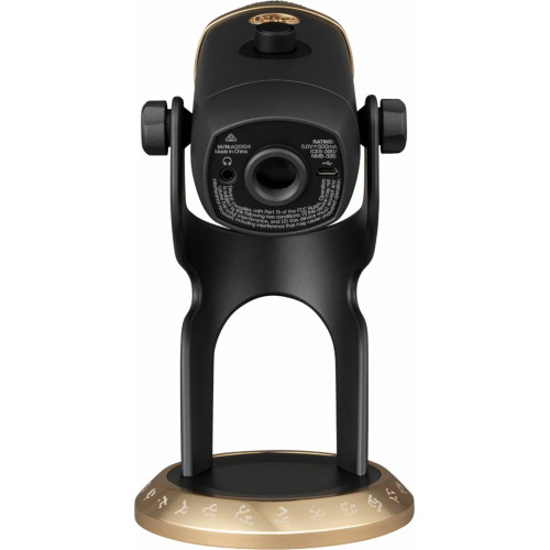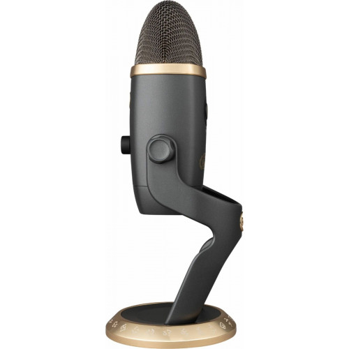 Проводной микрофон Yeti X World of Warcraft имеет форму обычного Yeti X, однако металлические элементы вместо серебряного окрашены под золото. На микрофоне имеются руны Утробы из Shadowlands, которые можно увидеть по ободу подставки и вокруг регулятора громкости, где их цвет можно настроить под свой вкус с помощью приложения Logitech G Hub. На задней части микрофона присутствует золотой логотип World of Warcraft.