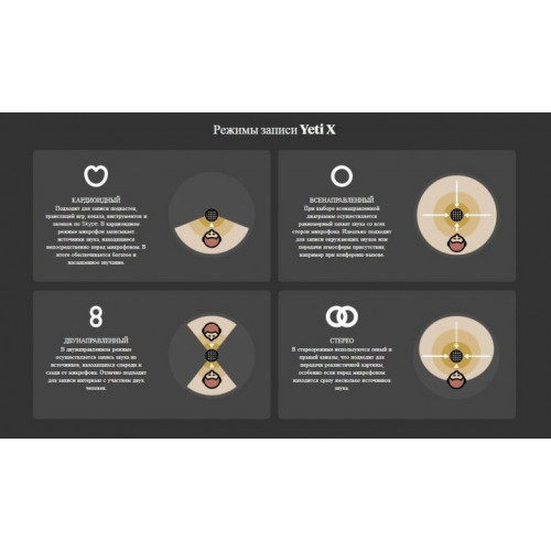 Вращая переключатель, вы можете выбрать подходящий режим записи из представленных в Yeti: