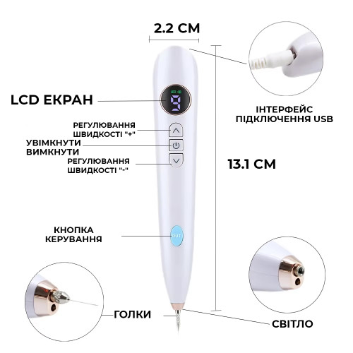 Электрокоагулятор для удаления папиллом и бородавок YP05 Белая с подсветкой + блок питания и иглы в Подарок (00-0000989)