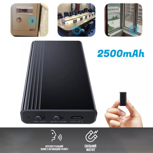 Диктофон цифровой с большим временем работы до 500 часов записи, micro SD, с активацией голосом, с магнитом Volemer SPY-L1 64 Гб