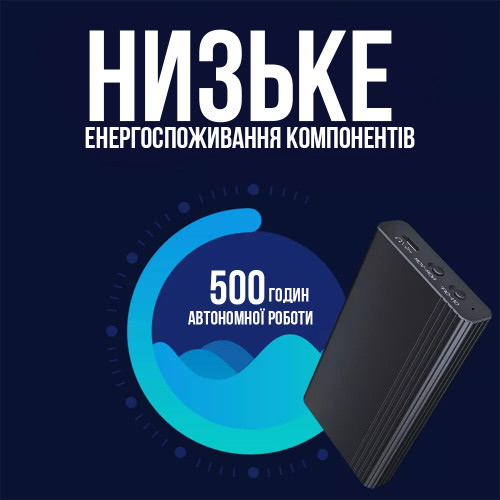 Этот цифровой рекордер в компактном корпусе вы можете прикрепить на любую металлическую поверхность благодаря встроенному в корпус достаточно сильному магниту. Внутри его находятся чувствительный микрофон и аккумулятор на 500 (!) часов непрерывной работы, благодаря которому вы сможете записать звук с максимального расстояния до 8 метров в течении длительного времени. Для того, чтобы точно ничего не потерять из информации есть функция авто сохранения записанного каждые 120 минут, а в качестве места хранения вы можете выбрать любую карту памяти нужного объёма до 128 Гб включительно.