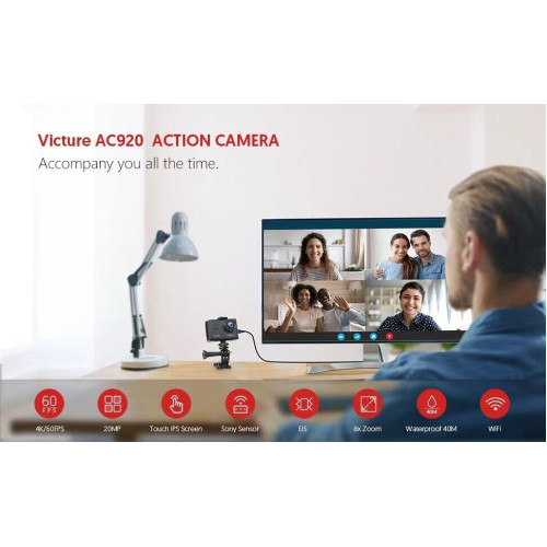 Видеокамера 4K, Touch Screen с дистанционным управлением, для подводной съемки Victure AC920 - это компактная, водонепроницаемая, носимая и монтируемая камера. Обладая великолепными характеристиками ультраширокоугольного объектива, встроенным ЖК-дисплеем, несколькими режимами захвата, является идеальным устройством для видео с высоким разрешением 4k. Victure AC920 - это надежный компаньон для занятий спортом на открытом воздухе, туризма, стрельбы в реальном времени и записи повседневной жизни.