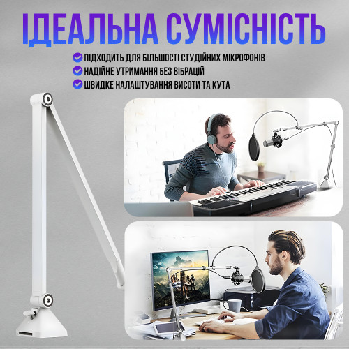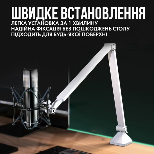 Стойка-пантограф, кронштейн усиленный подходит для Blue Yeti / QuadCast / SoloCast / Samson / Shure PF01 White