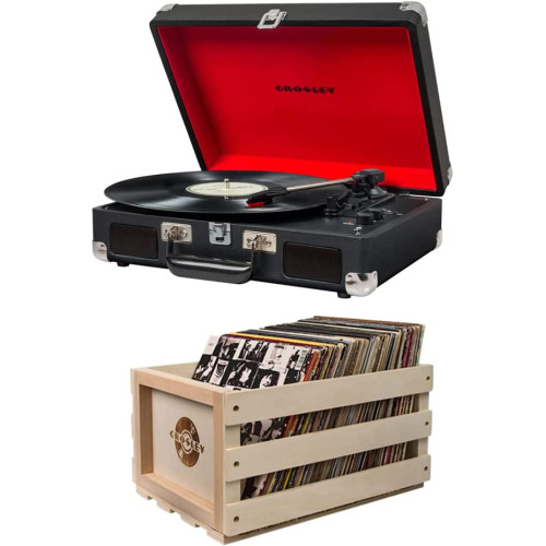 Проигрыватель винила Crosley Cruiser Deluxe Black/Red c Bluetooth KT8005H-BK + ящик для хранения пластинок