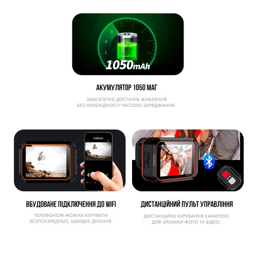 Сценарии применения: экстремальные виды спорта, спорт на открытом воздухе, езда на велосипеде, вождение, безопасность и т. д.