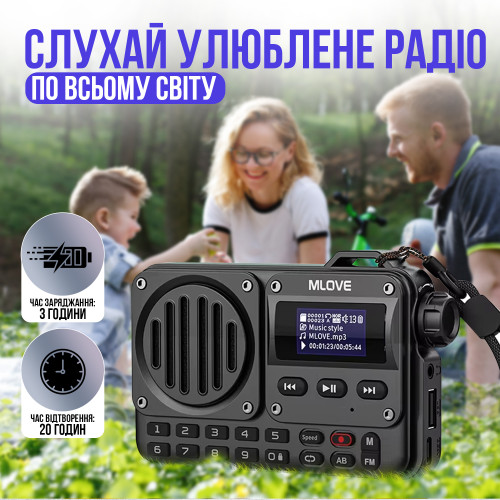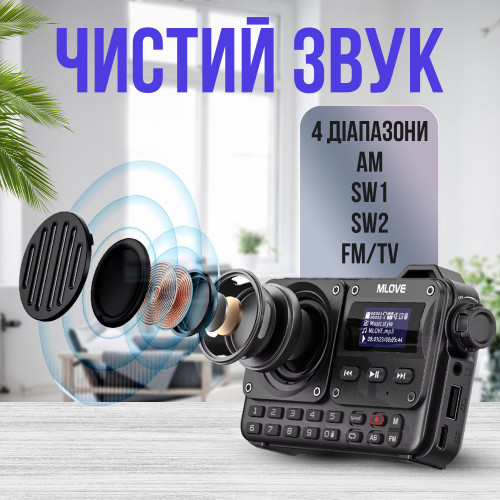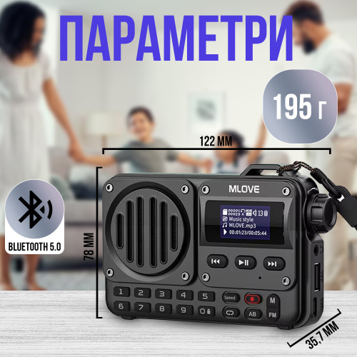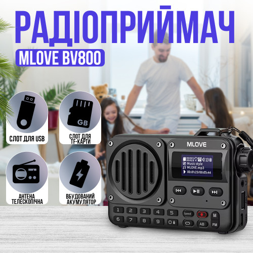 Радиоприемник / Bluetooth-колонка с аккумулятором MLOVE BV800 ( FM, USB, MP3, MicroSD) Black (00-0001236)