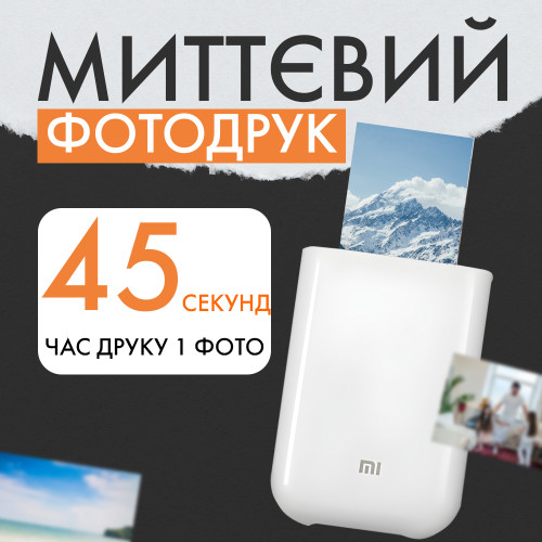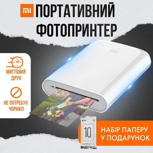Принтер портативный Mi Pocket photo printer White + Набор бумаги в Подарок