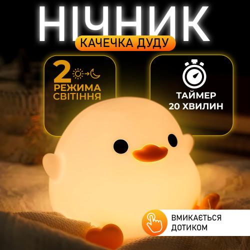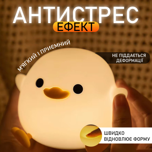 Cветильник ночник силиконовый Сидящая утка мини со встроенным аккумулятором, 2 режима свечения и таймер (00-0001280)