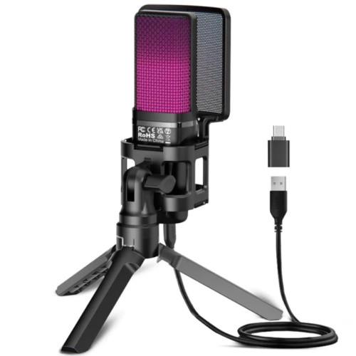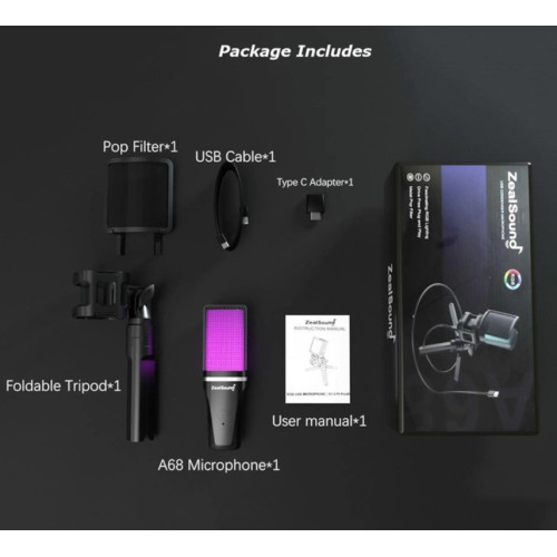 Микрофон конденсаторный игровой профессиональный для ПК PS4 PS5 Mac Zealsound RGB USB представляет собой невероятно мощный микрофон для записи вокала или речи. Он имеет высокую частоту дискретизации 192 кГц/24 бит и практически отсутствие потерь в звуке, благодаря чему достигается потрясающая чистота звучания. В комплект входит портативная настольная подставка, которая делает микрофон доступным для любого места записи. Бренд ZealSound славится отличным качеством и доступной ценой. Данный микрофон имеет интерфейс USB и USB Type-C, что идеально подходит для записи голоса или вокала, игры или учебы.