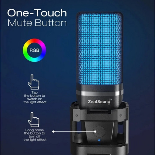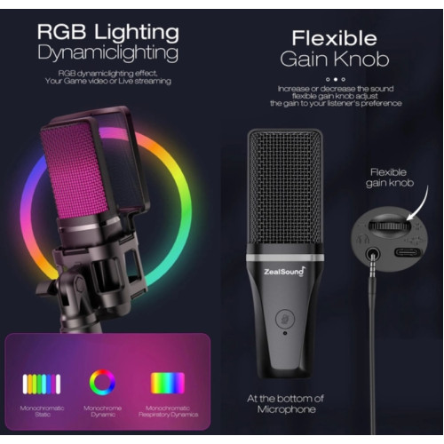 Микрофон конденсаторный игровой профессиональный Zealsound RGB USB для ПК PS4 PS5 Mac