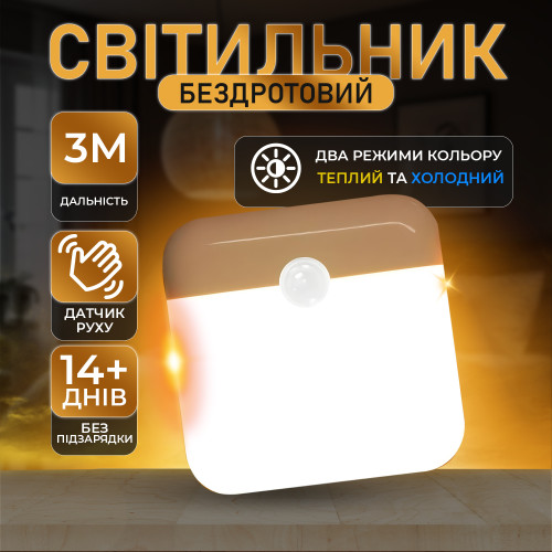 Cветильник ночник с датчиком движения и двумя режимами света F6 (00-0001310)
