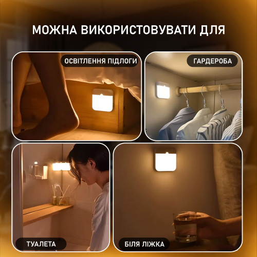 Cветильник ночник с датчиком движения и двумя режимами света F6 автоматически включается при обнаружении движения в темное время