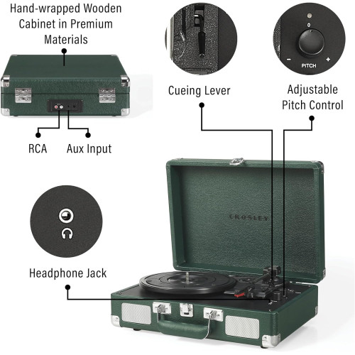 Проигрыватель винила Crosley Cruiser Plus CR8005F-EM Dark Emerald c Bluetooth