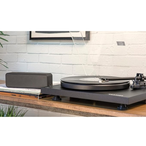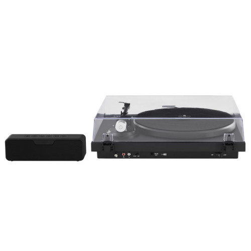 Проигрыватель винила Crosley C6 Black с беспроводной колонкой Bluetooth - это полностью ручной двухскоростной проигрыватель винила, созданный, чтобы дать меломанам возможность испытать настоящий аналоговый опыт. Плинтус из МДФ аудио-класса обернут фанерой в соответствии с вашим стилем, а поскольку вес помогает сдерживать вибрацию, тяжелый стальной диск обеспечивает надежное место для винила во время игры. Под пластиной расположен синхронный двигатель с низким уровнем вибрации, подключенный через записи вращения ремня на скорости 33 1/3 и 45 об / мин - просто перемещайте ремень из одной канавки в другую, чтобы изменить скорость. Наберите прижимную силу с помощью регулируемого противовеса тонарма, а затем используйте рычаг метки, чтобы аккуратно опустить иглу на пластинку, чтобы наполнить комнату теплым звуком винила. C6 поставляется с предустановленным картриджем с подвижным магнитом, но использует стандартное крепление, поэтому вы можете обновлять его по мере роста вашей коллекции виниловых пластинок. Проигрыватель винила может подключаться к колонке Bluetooth которая поставляется в комплекте, а также можете подключить колонки или ресивер к выходам RCA на задней панели, включить встроенный предусилитель (или использовать свой собственный).