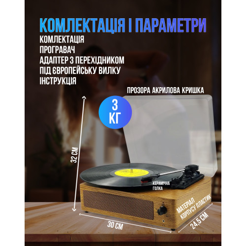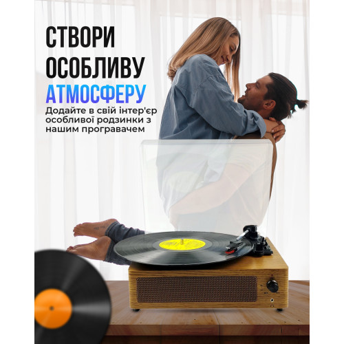 Виниловый проигрыватель T06A c Bluetooth представляет собой компактный проигрыватель, который станет прекрасным аксессуаром в вашей комнате.