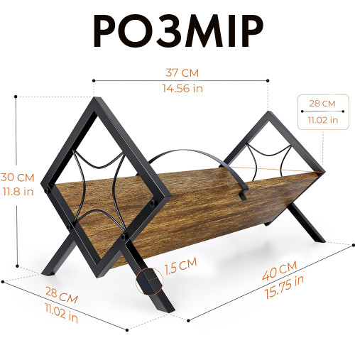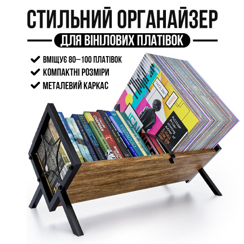 Стеллаж подставка для хранения виниловых пластинок одноярусная металл и дерево (00-0001341)