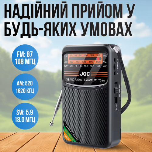 Радиоприемник карманный 3-диапазонный с аккумулятором JOC TG-66 Black (00-0001363)