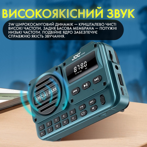 Радиоприемник / Bluetooth-колонка с аккумулятором LED дисплей JOC H456BT ( FM, USB, MP3, MicroSD) Blue (00-0001381)