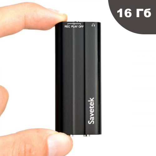 Мини диктофон Savetek 600 - это высокотехнологичный миниатюрный цифровой диктофон, главными преимуществами которого есть миниатюрный размер 60 x 25 x 11 мм, датчик звука с активацией записи голосом и встроенный аккумулятор на 45 часов непрерывной записи. Он содержит высокочувствительный микрофон, способный записывать голос на расстоянии 5-6 метров, а так же встроенную память 16 Гб, которой хватит для 180 часов записи. К сожалению, увеличить память нельзя, так как микро диктофон не поддерживает SD карты памяти.